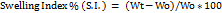 Swelling index (%) |