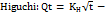 Where Qt is the amount of drug released at time t and KH is the higuchi release rate constant; this is the most widely used model to describe drug release from pharmaceutical matrices.
