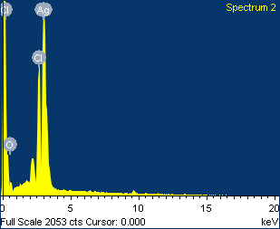 Fig. 4: EDX curve with three dominant peaks for Cl, O and Ag