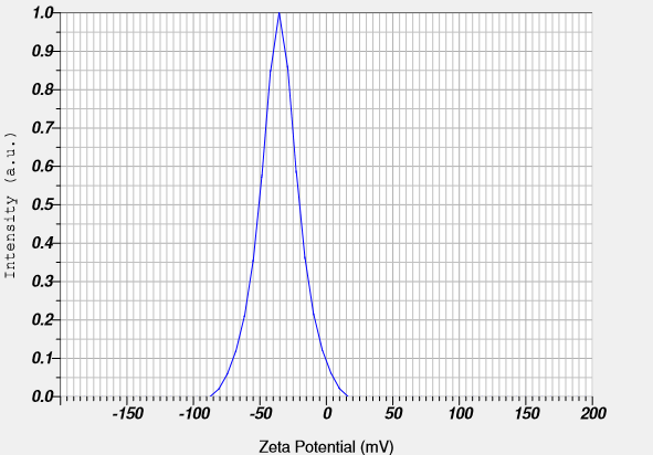 Silver nanoparticles synthesized by green method are stable in nature as it has zeta potential-35.4 mV shown in fig.6. Measurement of zeta potential is depends on the movement of nanoparticles under influence of an applied electric field. This movemet depeds upon surface charge and the local environment of the particle[28].