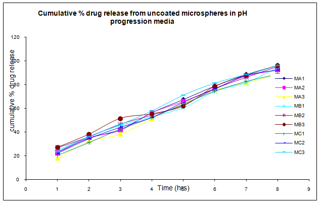 Fig. 1: Drug release from uncoated microspheres in pH progression media