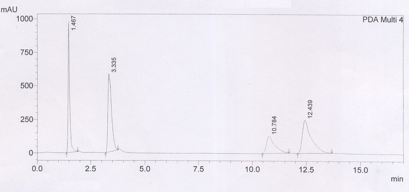 | Retention time (min.) | 1.47 | 4.05 | 11.29 |