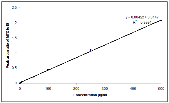 Fig. 3: Linearly regressed calibration curve of methotrexate