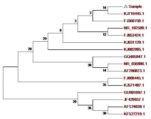 Isolate KC1 sequence of 16S rDNA obtained was subsequentlyused as query sequence to search similar equences from Genbank using the basic local alignment search tool (BLAST) at the national center for biotechnology information (NCBI) and percent homology scores was generated to identify bacteria. Bacteria with 16S rDNA sequences>98% similarity was considered to be of the same phylotype. Each 16S rDNA sequence was compared by using the BLAST alignment program with data available from Gen Bank at the National Institutes of Health. The computer alignment provides a list of matching organisms, ranked in order of similarity between the unknown sequence and the sequence of the corresponding organism from the database. The percentage and absolute number of matched base pairs from each BLAST match was reported. Bacterial 16S rDNA sequences were also aligned with near neighbor sequences using the Clustal W program and phylogenetic relationships were inferred using a maximum likelihood algorithm (Phylip package). Phylogenetic trees were constructed by the neighbour-joining method (Saitou and Nei, 1987) using the PHYLIP version 3.6 software package [20].