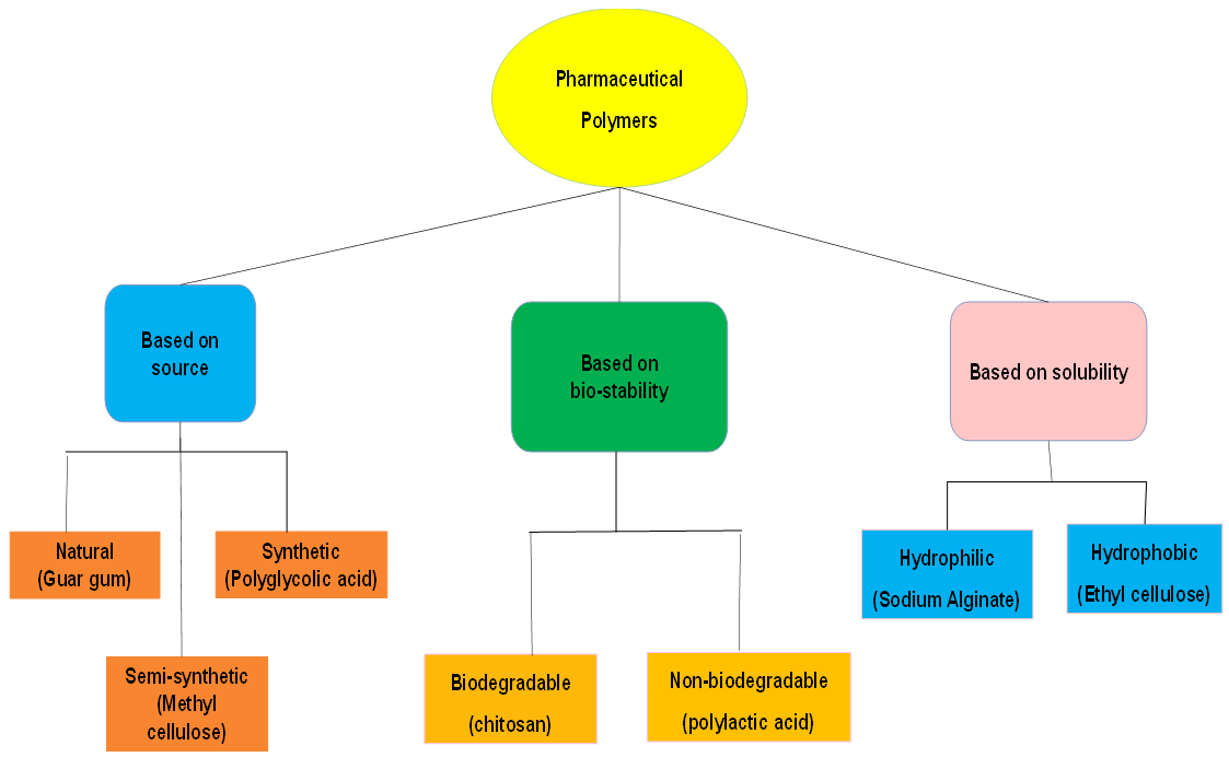 Most widely used polymers in drug delivery systems are categorised based on their source, bio-stability and solubility (fig. 1) [7].