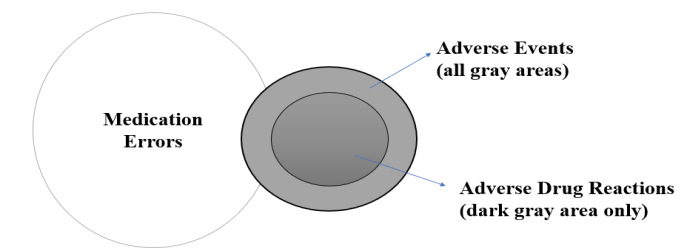 The safety of drugs is the major goal of the healthcare and pharmaceutical industry today [1]. The correct dosage and proper care are important for improving health and enhancing human well-being. In the current scenario, all the drugs developed have associated risks. Only drugs with a greater therapeutic effect than the associated risk are prescribed as medicines. ADRs are drug-related, unwanted, undesired effects on human health. The Adverse Drug Reactions are categorized to be part of Adverse Drug Events, which is again included in the subcategory of medication errors as shown in fig. 1.