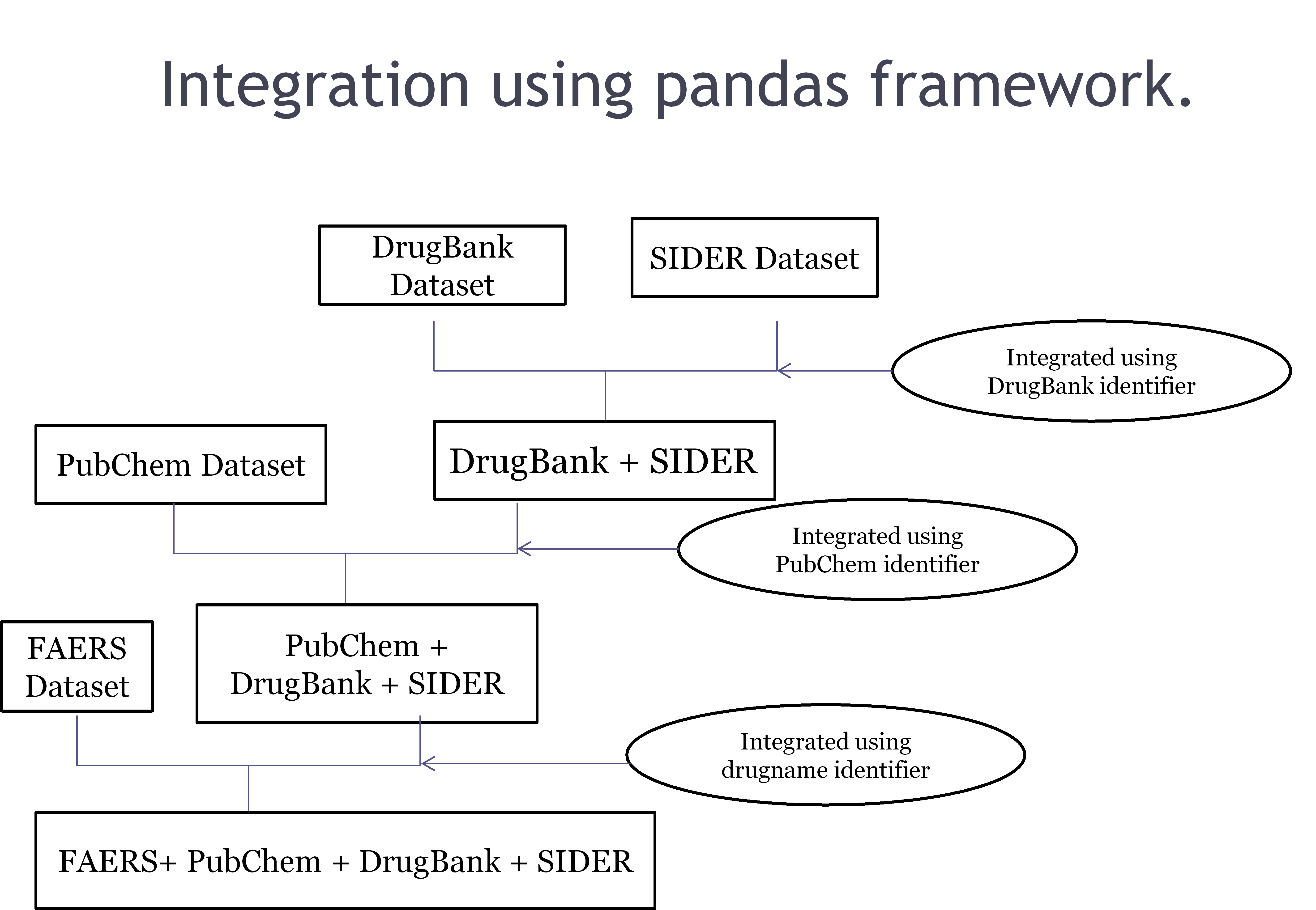 In conclusion, this study successfully undertook the pre-processing of an integrated dataset derived from four major repositories: FAERS, SIDER, DrugBank, and PubChem. The integration process involved meticulous data cleaning and normalization to ensure the coherence of information across diverse sources. The standardized dataset was then subjected to exploratory data analysis, revealing intricate relationships and patterns within drug-related information. The utilization of advanced visualization techniques further enhanced the interpretability of the integrated dataset. Visual representations facilitated the identification of significant trends, associations, and potential correlations, offering a comprehensive view of drug interactions, adverse events, and molecular properties. Researchers and practitioners in pharmacovigilance and drug discovery can leverage these visualizations to make informed decisions and gain deeper insights into the complexities of drug-related data. The success of this pre-processing and visualization approach underscores the importance of integrating diverse datasets for a holistic understanding of drug-related information. The resultant dataset, now refined and accessible, stands as a valuable resource for researchers and decision-makers in the continual pursuit of safer and more effective pharmaceutical interventions.