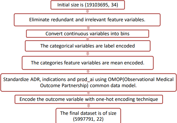 The resultant dataset should be pre-processed for better prediction of adverse drug reactions. The steps involved in this process are discussed in the fig. 6.