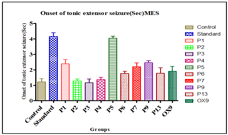 Fig. 1: Onset of tonic extensor seizure (sec.) in MES model