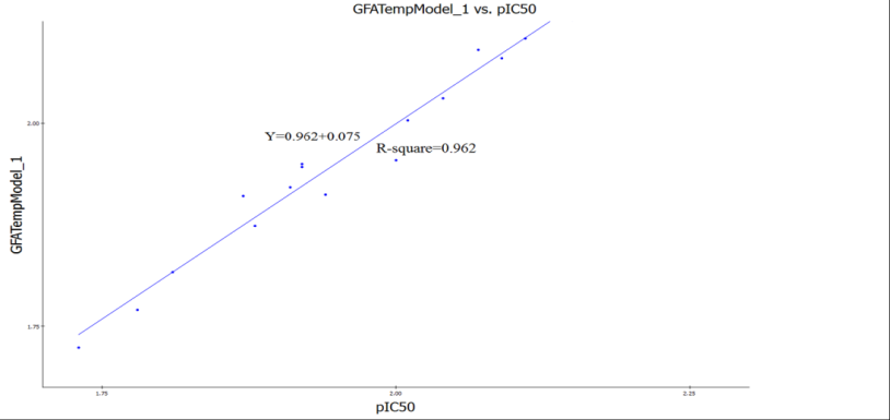GFATempMode1= 2.0233+0.54829; ALogP–0.93868; Molecular fractional polar surface area–0.80254; Molecular weight–0.54158; Number of hydrogen donor-1.5164; Number of hydrogen acceptor+2.8333; number of rotatable bonds–1.1912; number of rings–0.98855; Number of aromatic rings+0.00257542