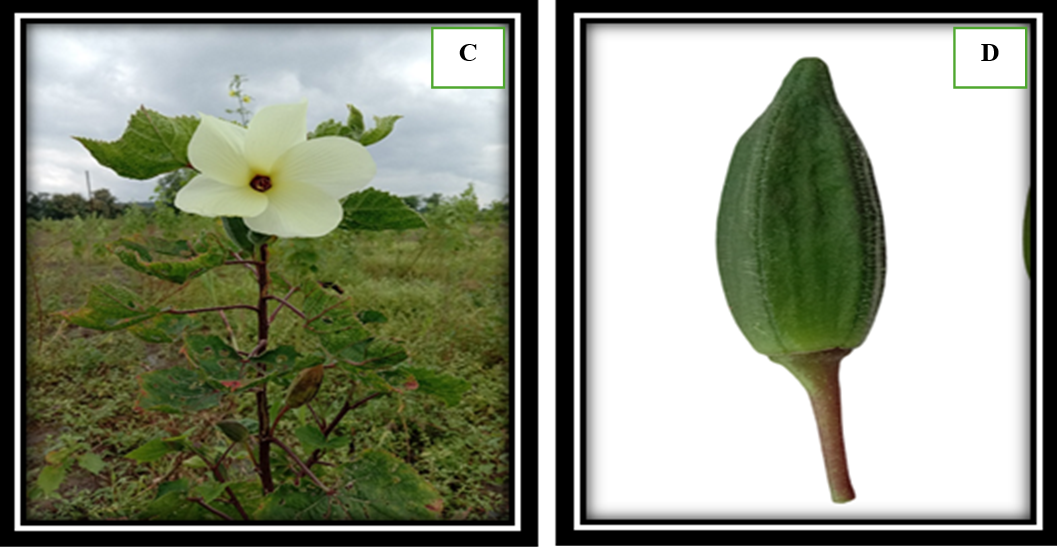 The diverse agroclimatic conditions of Southeast Asia, including variations in soil types and rainfall patterns, have fostered the rich diversity of Abelmoschus species. The growth patterns of this genus are diverse, ranging from shrubs to annual and perennial plants, and are characterized by long-petioled, hastate, or palmately lobed leaves that may be glandular or glabrous. Its flowers display a spectrum of colors, including white, deep yellow, pink, and red [7-9]. Species of Abelmoschus, such as the commercially significant A. esculentus L., are distributed across India, from the southern region and western hills [9] to the central Himalayan range [10]. Recent studies highlight the diverse applications of Abelmoschus varieties, valued for their exceptional nutritional and medicinal properties, particularly in their seeds and foliage [11].