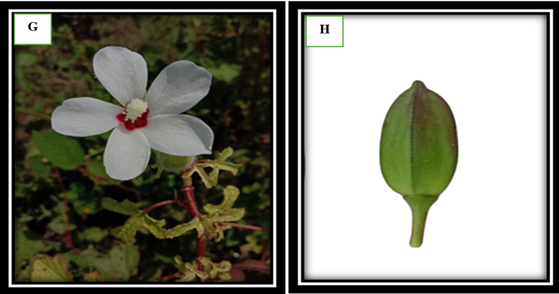India's diverse agroclimatic zones support the growth of multiple Abelmoschus species, with the country being home to eight identified species [12]. This study reports the presence of four Abelmoschus species (fig. 2). The only one that is cultivated within them is A. esculentus L. A. ficulneus L. is a true wild species, whereas A. moschatus L. and A. manihot L. are wild species that are also cultivated for their fragrant seeds [4]. Wild vegetables hold significant cultural and dietary value, often playing a vital role in folklore, particularly on special occasions, and contributing to a balanced, nutritious diet [13]. Their importance extends beyond sustenance, as they are also associated with traditional healing practices. As a result, ethnodirected research can greatly enhance efforts to discover new food sources and develop innovative medicinal applications. This study aimed to explore the traditional knowledge and utilization of both wild and domesticated Abelmoschus species among indigenous communities residing in remote tribal regions of the study area. By documenting how these communities have historically cultivated, harvested, and consumed these plants, the research provides valuable insights into their nutritional, medicinal, and cultural significance. Understanding these traditional practices can inform conservation efforts, sustainable agriculture, and the potential for further scientific exploration of Abelmoschus species for broader applications in food security and medicine.