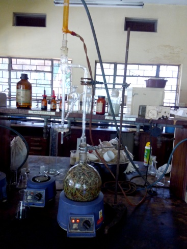 Fig. 1: Steam distillation of C. citratus and O. gratissimum essential oils using the clevenger apparatus