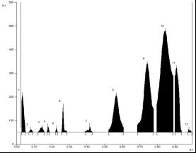 Fig. 1: Chromatogram of ethanol extract of S. amaranthoides at 365 nm for flavonoids