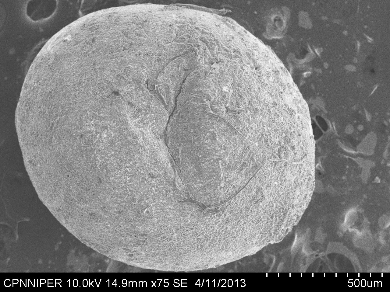 Shape and surface characteristics of microbeads were investigated using scanning electron microscopy (SEM, Hitachi S 3400 N, Japan) of the samples before and after carrying out the dissolution. The SEM samples were prepared by lightly spreading the microbeads on carbon tape, which was stucked on an aluminium stub. The stubs were coated with gold using a gold sputter coater in a high vacuum evaporator, and the samples were observed at 10 kV.