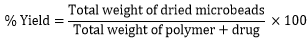 The % yield of all the formulations of microbeads was calculated using the following formula: