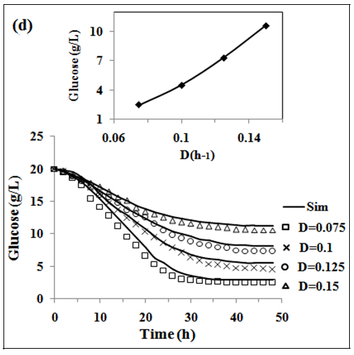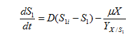 where, S1 is concentration of glucose(g/l), S1i is glucose concentration in influent and is yield coefficient of biomass with respect to glucose.