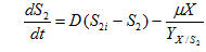 where, S2 is protein concentration(g/l), S2i is protein concentration in influent and is yield coefficient of biomass with respect to protein.