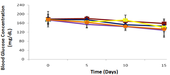 Testing the antihyperglicemic activities with the low-dose of streptozotozin induction (Multiple low-dose Streptozotozin (MLDSTZ)) showed that the ethyl acetate extract capable of lowering blood glucose level from day 5 to day 15 (fig. 4).
