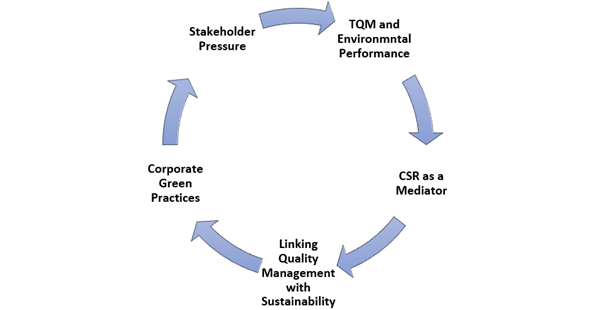 Fig. 2: TQM and sustainability cycle shows how total quality management drives corporate green practices through CSR, aligning quality systems with sustainability goals (Source: Author’s own)