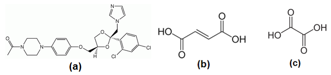 Fig. 1: Molecular structure of KTZ (a), FUMA (b), and OXA (c)