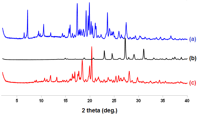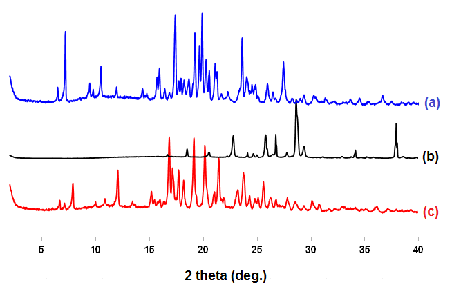 Fig. 3: PXRD pattern of KTZ (a), OXA (b), KTZ OXA (c)