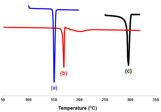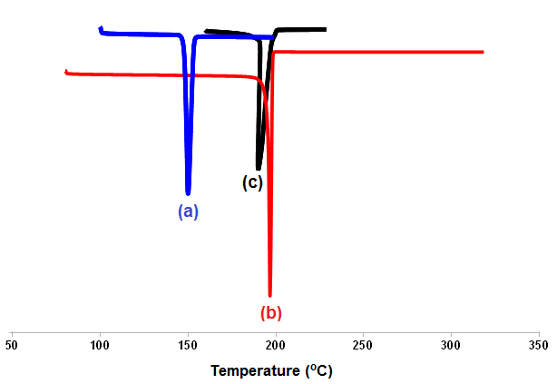 Fig. 5: DSC thermograms of KTZ (a), KTZ OXA (b), OXA (c)