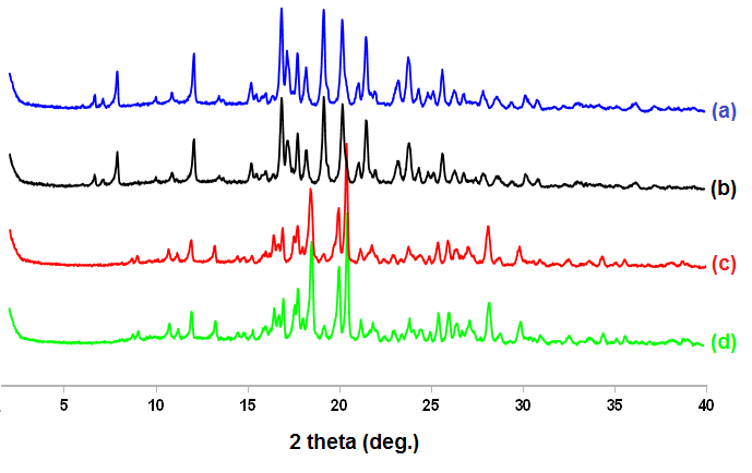 Fig. 7: PXRD pattern of KTZ FUMA before solubility (a), KTZ FUMA after solubility (b), KTZ OXA before solubility (c), KTZ OXA after solubility (d)