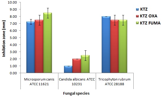 Fig. 9: In vitro antifungal activity of KTZ, KTZ OXA and KTZ FUMA