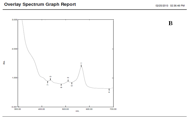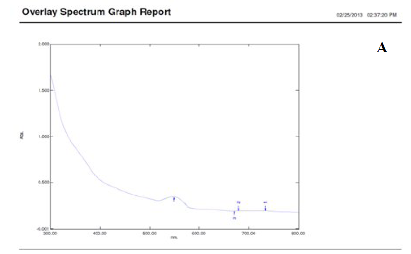 Fig. 6: Cytochrome C release from zebrafish brain mitochondria. Traces A and B represent the difference spectrum of the mitochondrial suspension treated with PQ and PQ+FA-D fraction respectively