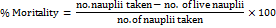 No. of dead nauplii out of 10 | Dead nauplii out of 30 | Live nauplii out of 30 | % mortality mean±SEM |