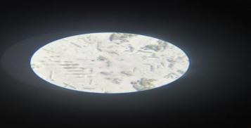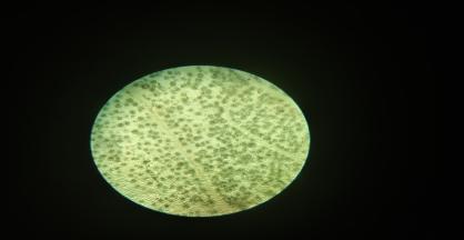 Fig. 2: The powder microscopy of leaves of Colocasia esculenta under 100x magnification scale
