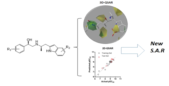 Apablaza G, Montoya L, Morales Verdejo C, Mellado M, Cuellar M, Lagos CF. 2D-QSAR and 3D-QSAR/CoMSIA Studies on a Series of (R)-2-((2-(1H-Indol-2-yl)ethyl)amino)-1-Phenylethan-1-ol with human β₃-adrenergic activity. Molecules. 2017 Mar;22(3):404. doi: 10.3390/molecules22030404, PMID 28273884.