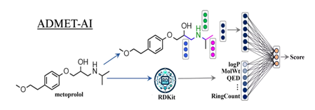 To address this need, ADMET-AI was developed as a fast, accurate platform for ADMET property prediction, featuring both a web interface and a python package. It utilizes Chemprop-RDKit, a graph neural network trained on 41 datasets from the therapeutics data commons (TDC), surpassing existing tools in speed and accuracy. Fig. 4 shows ADMET-AI uses machine learning models with the chemprop-RDKit architecture.