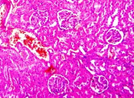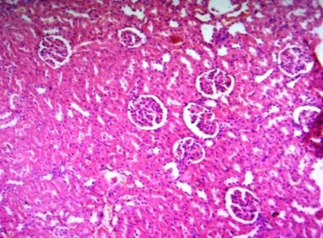 Fig. 3. shows the histology of kidney section. There was no alteration from the normal histology of kidney was observed, indicating the safety of mahagoni leaf powder.