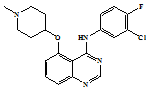 When the highest active compound was mapped on the generated hypothesis (fig. 4), the quinazoline nitrogen mapped on the acceptor feature, secondary amine nitrogen mapped on the donor whereas Fluorine mapped on the hydrophobic feature. A benzene ring and a quinazoline ring was mapped on the ring residues.