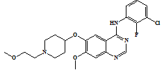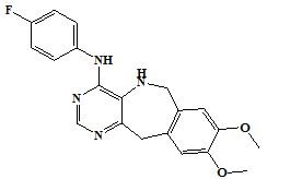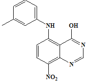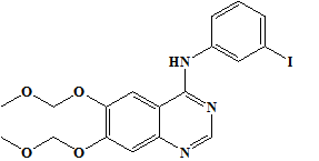 These studies were done using GLIDE (Maestro, version 8.5, Schrodinger, LLC, 2008) software and the crystal structure of EGFR (PDB code: 1M17), complexed with 4-anilinoquinazoline inhibitor, Erlotinib. The crystal structure was cleaned by deleting the ligand and the cofactors. This was followed by adding hydrogen atoms in their standard geometry, adjusting the bond orders and formal charges. The crystal structure was then refined, and the geometries were optimized with the OPLS-2005 force field using standard protocol and parameters. The inhibitor was extracted from the complex and re-docked (fig. 1).