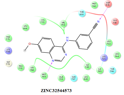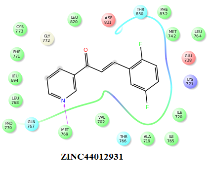 | ZINC44012931 | -7.86 | Met769, Leu768, Gly772, Leu694, Leu820, Pro770, Ala719, Ile720, Ile765 |