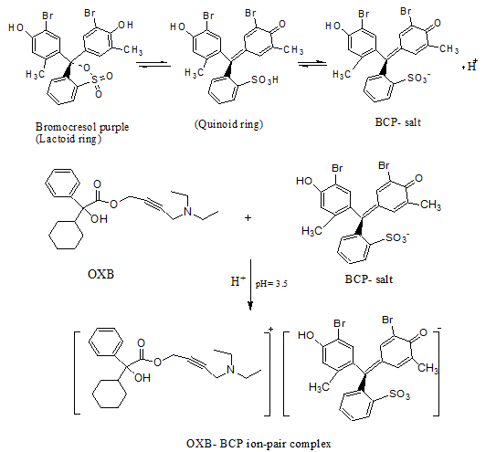 Scheme 1: Proposed reaction mechanism for the ion pair complex formation between OXB and BCP
