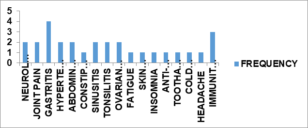 Fig. 3: Frequency of usability of tibetan medicine in different disease (n=17)