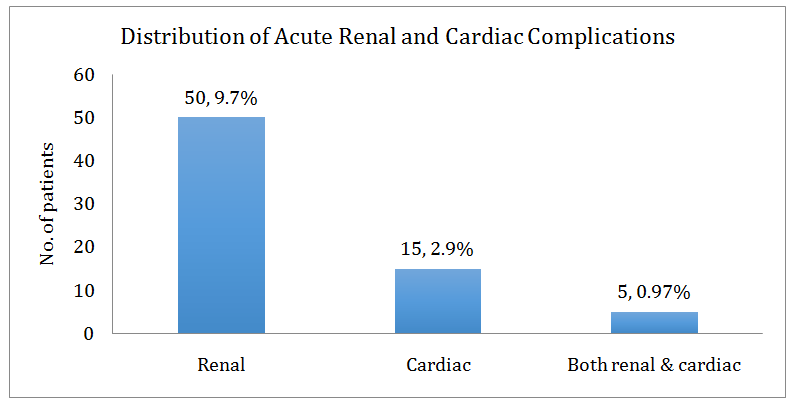 Fig. 1: Distribution of acute renal and cardiac complications