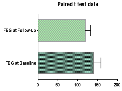 Fig. 2: Paired t test data of FBG levels at baseline and follow-up