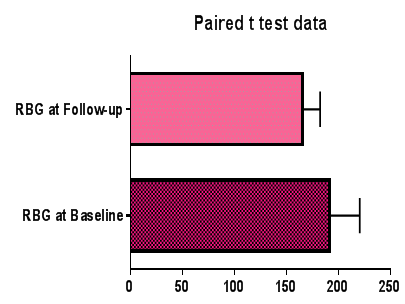 Fig. 3: Paired t test data of RBG levels at baseline and follow-up