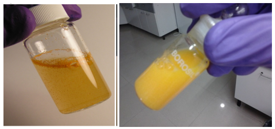 Fig. 1: Raw Curcumin and Curcumin loaded solid lipid nanoparticles in dispersion form
