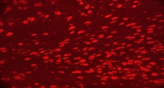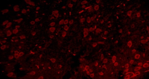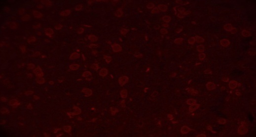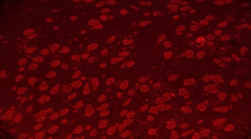 5 µM-thick paraffin sections through matched coronal levels of the SNpc and ST were processed as described above and non-specific binding was blocked by 1 h incubation in 1.5% BSA. Sections were incubated with primary antibody, mouse anti-NeuN (1:100) for one hour and then subsequently incubated with secondary antibody, TRITC conjugated goat anti-mouse IgG (1:20) for half an hour at room temperature. The number of positive cells in SNpc and ST was counted under x400 magnification with image analysis software (Motic DMB1–2MP, China). Percentage immunopositive cells were calculated as: (Number of immunopositive cells/mm2)/(Total number of cells/mm2) X 100.