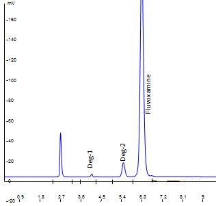 Conclusion: The proposed validated HPLC method for the quantitative estimation of fluvoxamine maleate in tablet dosage form is accurate, precise, economic, and robust. The developed stability indicating method can be recommended for analysis of drug and its degradation products in stability samples.