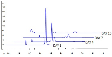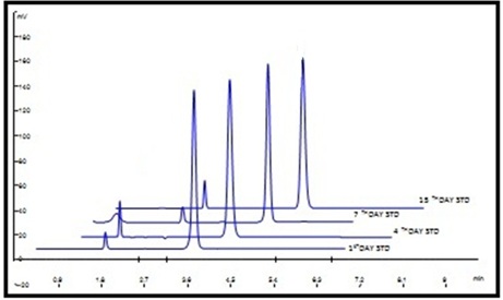 | Fig. 7c: Chromatogram of exposed Std. to Heat | Fig. 8c: Chromatogram of exposed sample to Heat |