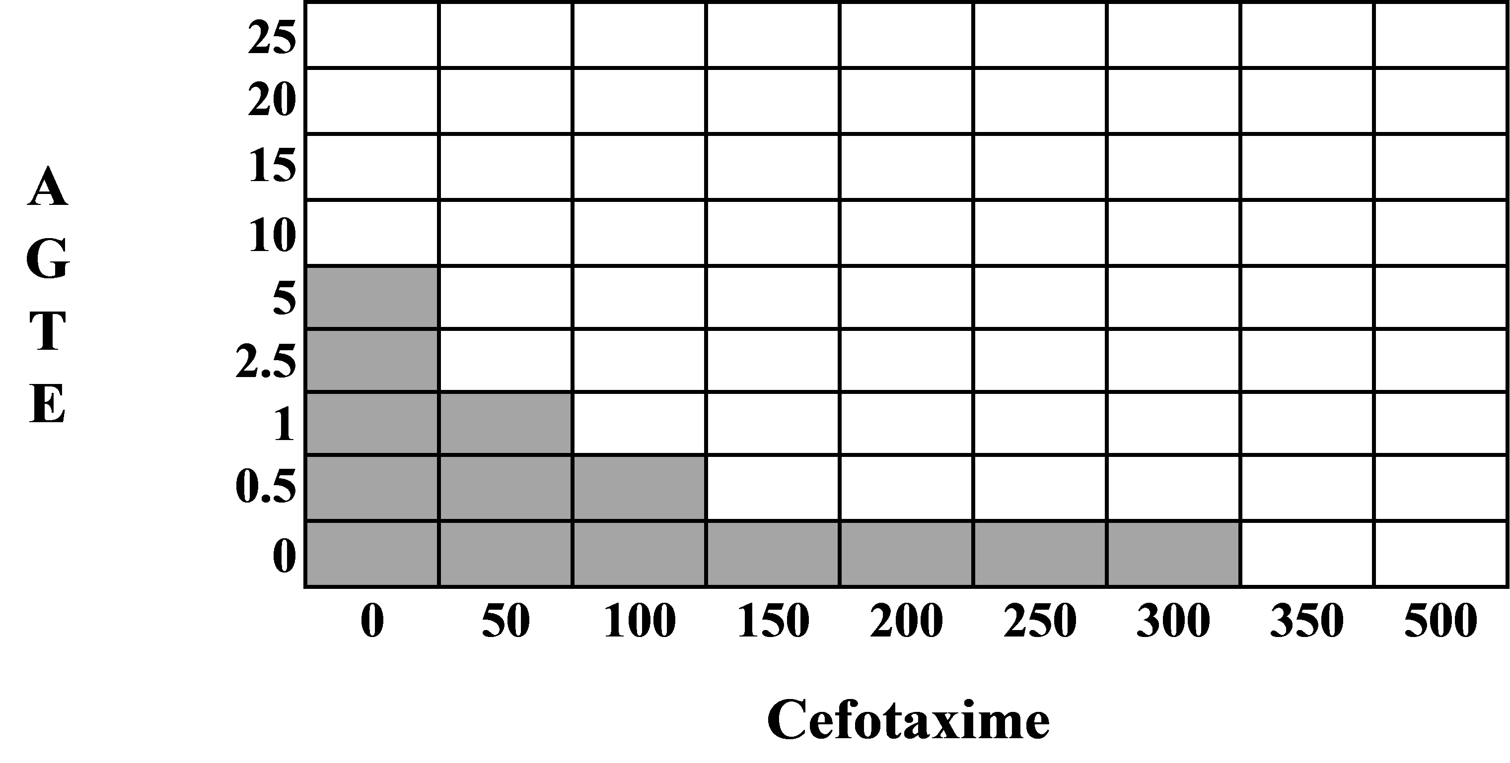 | Concentration of Cefotaxime (µg/ml) | 10 | 50 | 100 | 150 | 200 | 250 | 300 | 350 | 500 | 1000 |