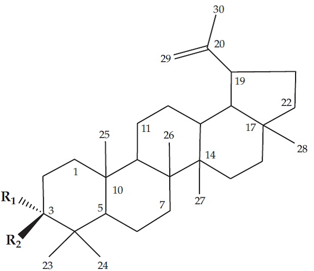 34: R1 = OCH3; R2 = OH; R3 = glucose 35: R1 = OCH3; R2 = H; R3 = glucose 36: R1 = OCH3; R2 = OH; R3 = acetyl glucose |