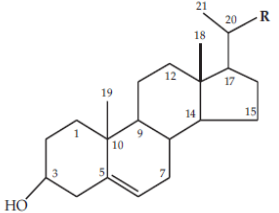 The chemical components and fatty acid content in the seeds and seed oils of Delonix regia was studied. Delonix regia was reported to contain 7% of crude fat, 45.2% of crude protein and 39.5% of carbohydrate content. Neutral, glycolipids and phospholipids with values of 80.2±0.5, 13.6±0.1, and 6.2±0.5 respectively were found. Hydrocarbons, ergost-5-en-3-ol, sitosterol and ergost-4-en-3-one were also detected [62]. The qualitative and quantitative distribution of carotenoids was studied in different parts of flowers of Delonix regia. Petals were found to contain 29 carotenoids viz. phytoene, phytofluene, β-carotene, γ-carotene, lycopene, rubixanthin, zeaxanthin, lutein etc. Sepals were found to contain 18 (phytoene, phytofluene, β-carotene, γ-carotene, lycopene, etc), whereas filaments contain 20 (phytoene, β-carotene, γ-carotene, lutein, zeaxanthin, antheraxanthin, flavoxanthin and other epoxy carotenoids) carotenoids. Anthers were reported to contain the highest concentration of carotenoids, from which 90% was zeaxanthin [63].